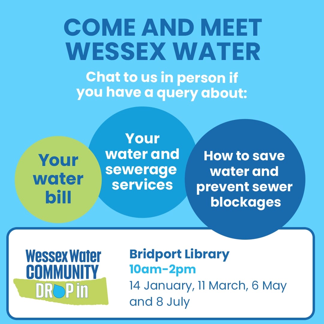 Wessex Water are running drop-in sessions at Bridport Library. See the poster for dates and times.